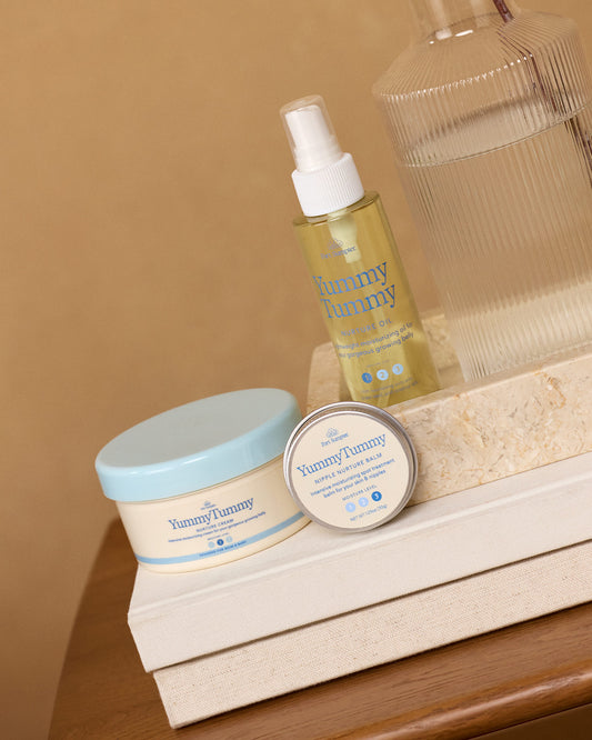 The Full Nurture Ritual is your simple, three-step system for skin that’s stretching, recovering, or just in need of a little extra love.